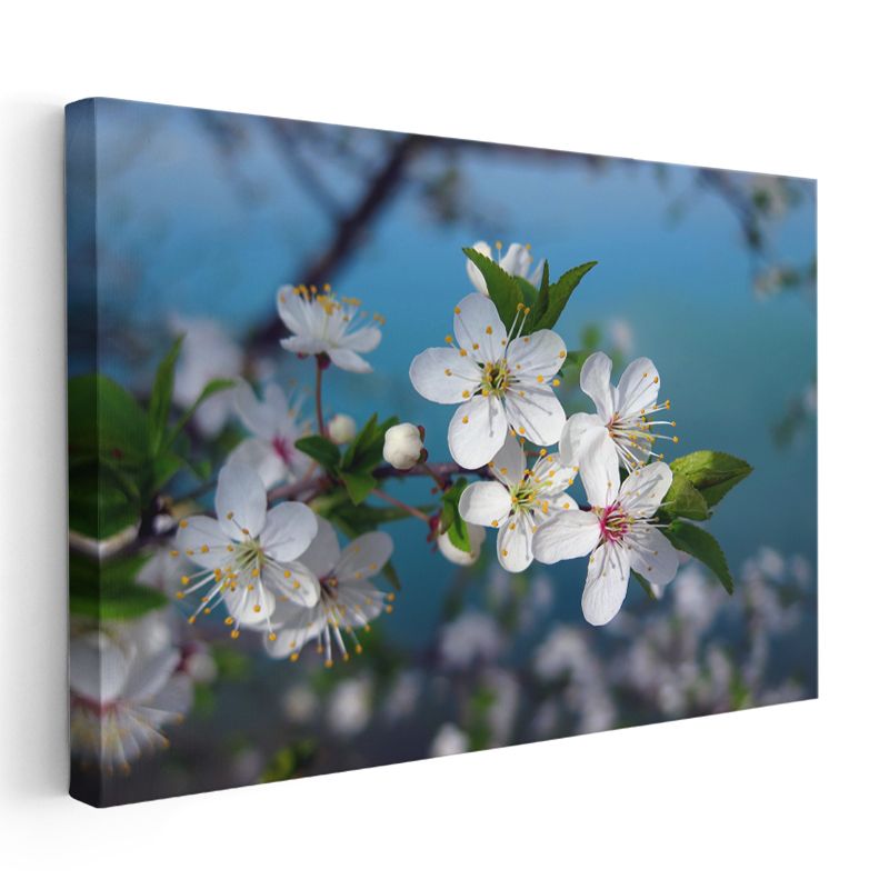 Japon Kiraz Çiçekleri - Yoğun Pembe Çiçekli Dal Kanvas Tablo