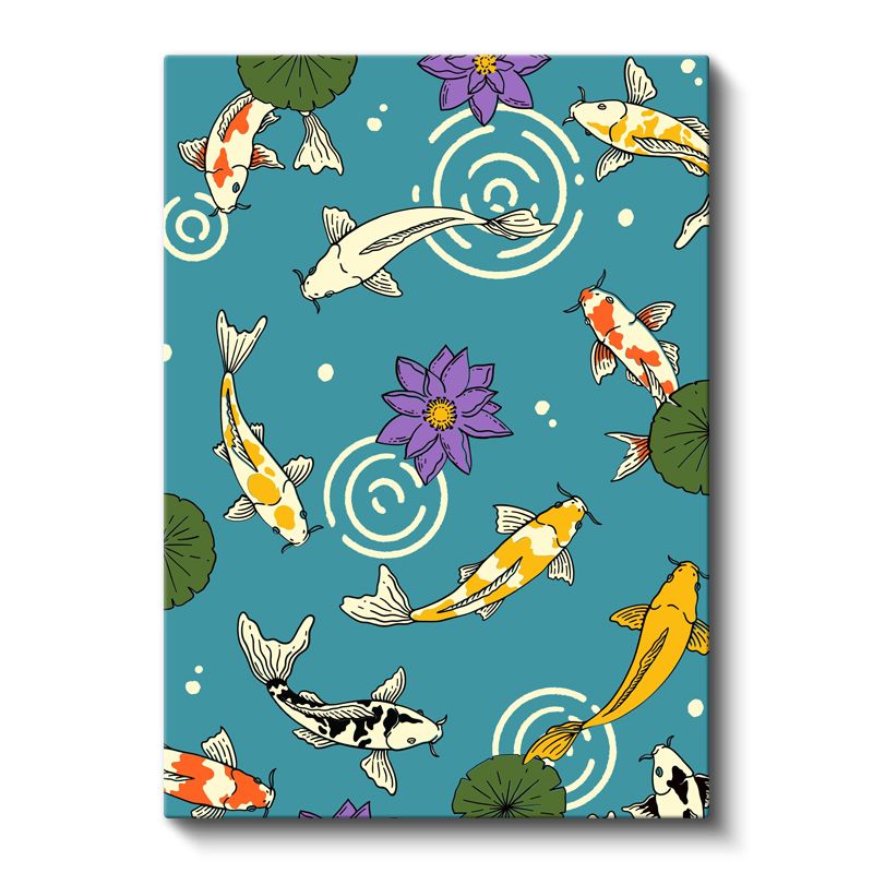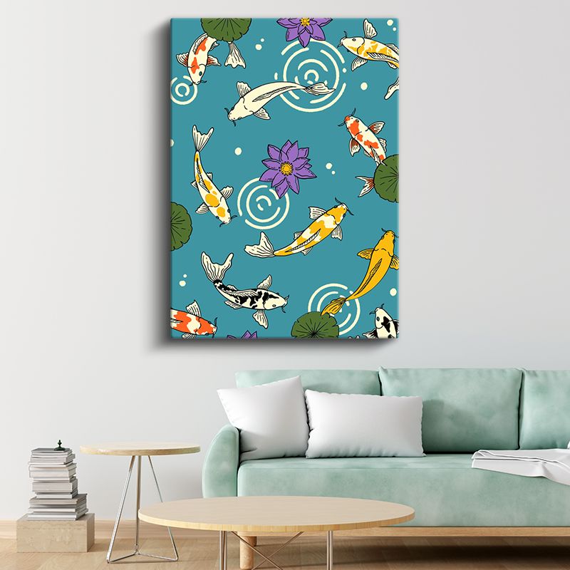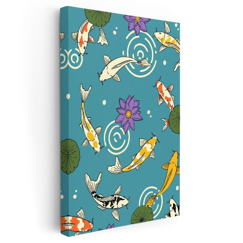 Japon Koi Balıkları - Turkuaz Nilüfer Gölü Kanvas Tablo