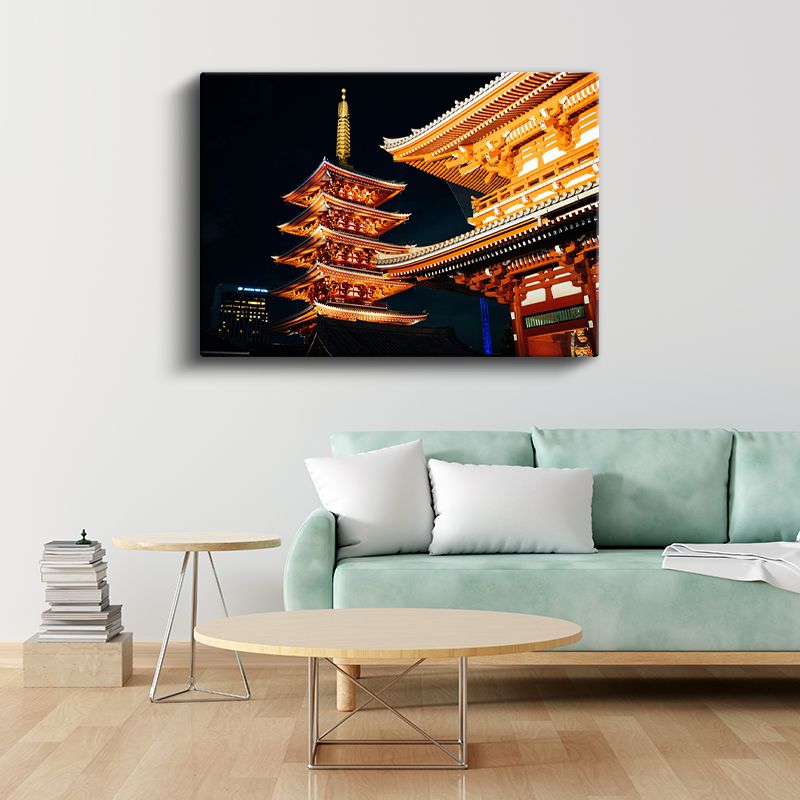 Japon Tapınağı - Gece Aydınlatması Kanvas Tablo