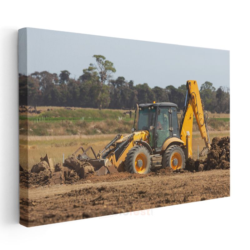 JCB Kazıcı Yükleyici - Toprak İşlerinde Çalışan İş Makinesi Kanvas Tablo