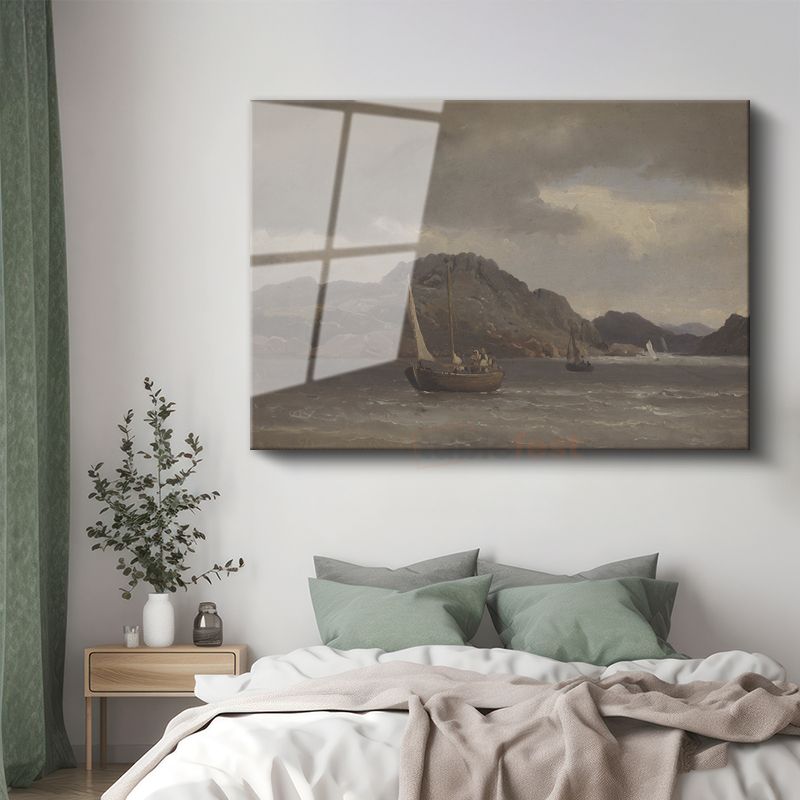 Jean-Baptiste-Camille Corot - Dağlık Deniz Manzarası Cam Tablo