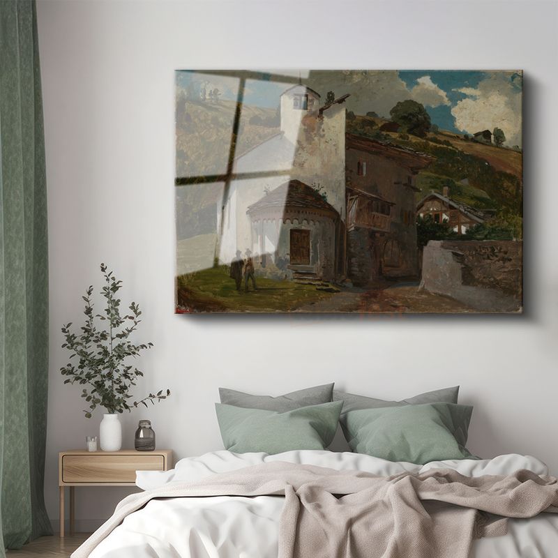 Jean-Baptiste-Camille Corot - İtalyan Köy Kilisesi Cam Tablo