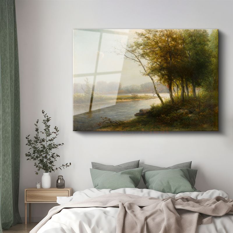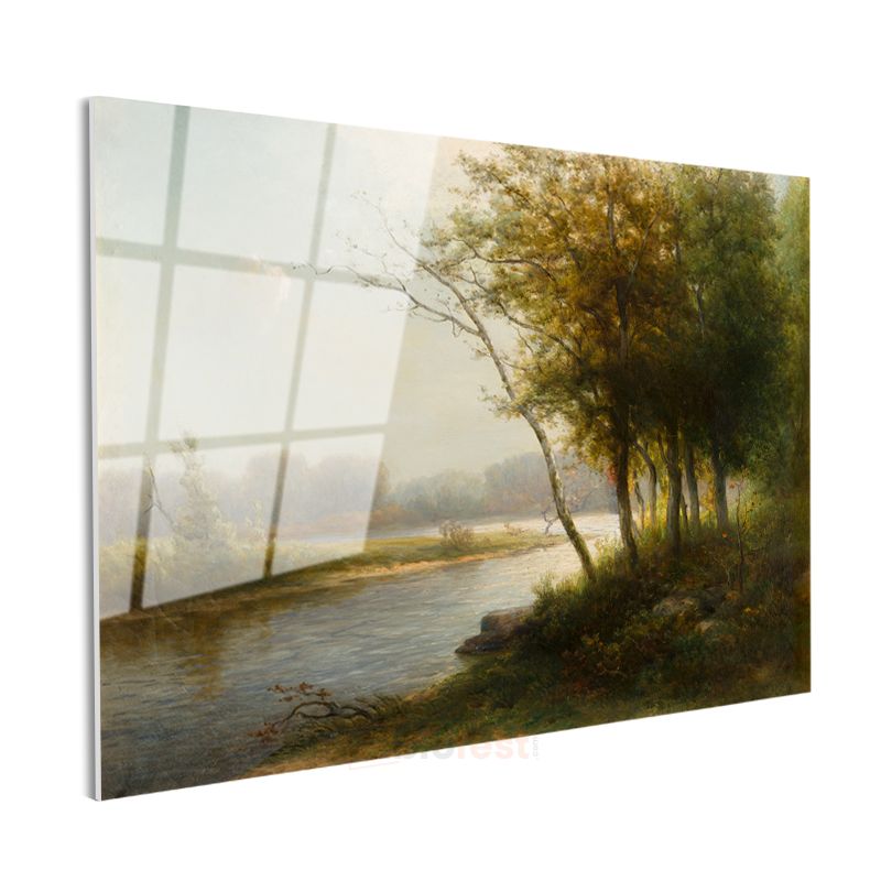 Jean-Baptiste-Camille Corot - Nehir Kenarında Ağaçlar Cam Tablo
