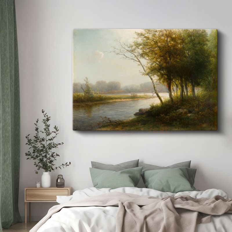 Jean-Baptiste-Camille Corot - Nehir Kenarında Ağaçlar Kanvas Tablo