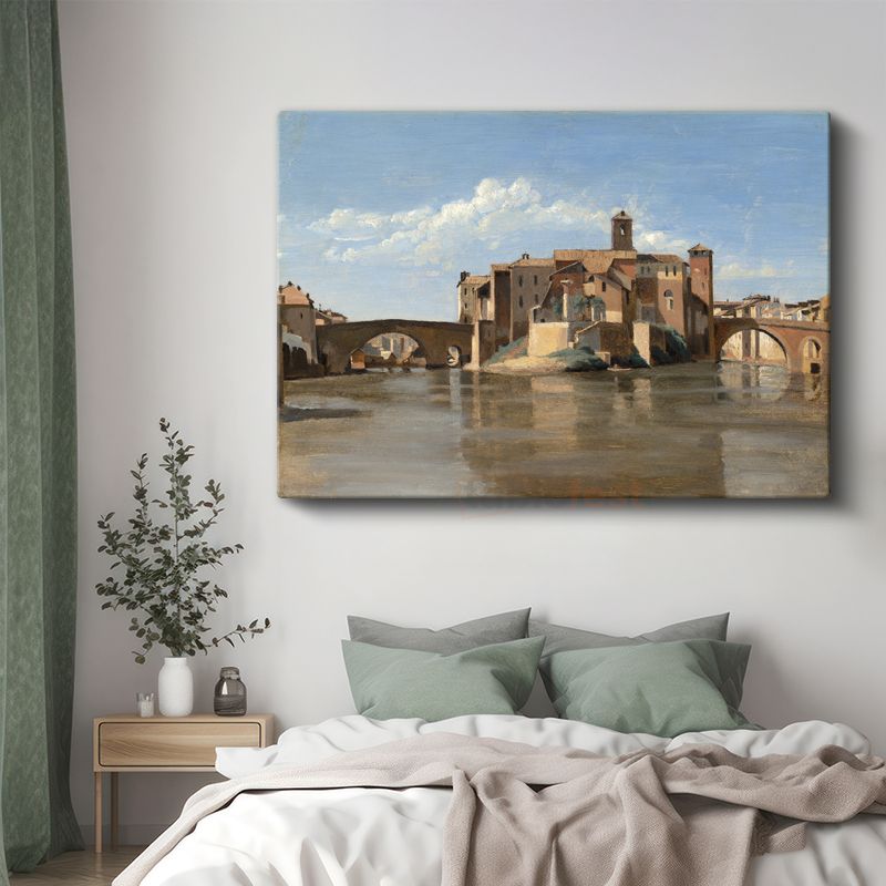 Jean-Baptiste-Camille Corot - Tiber Nehri Manzarası Kanvas Tablo