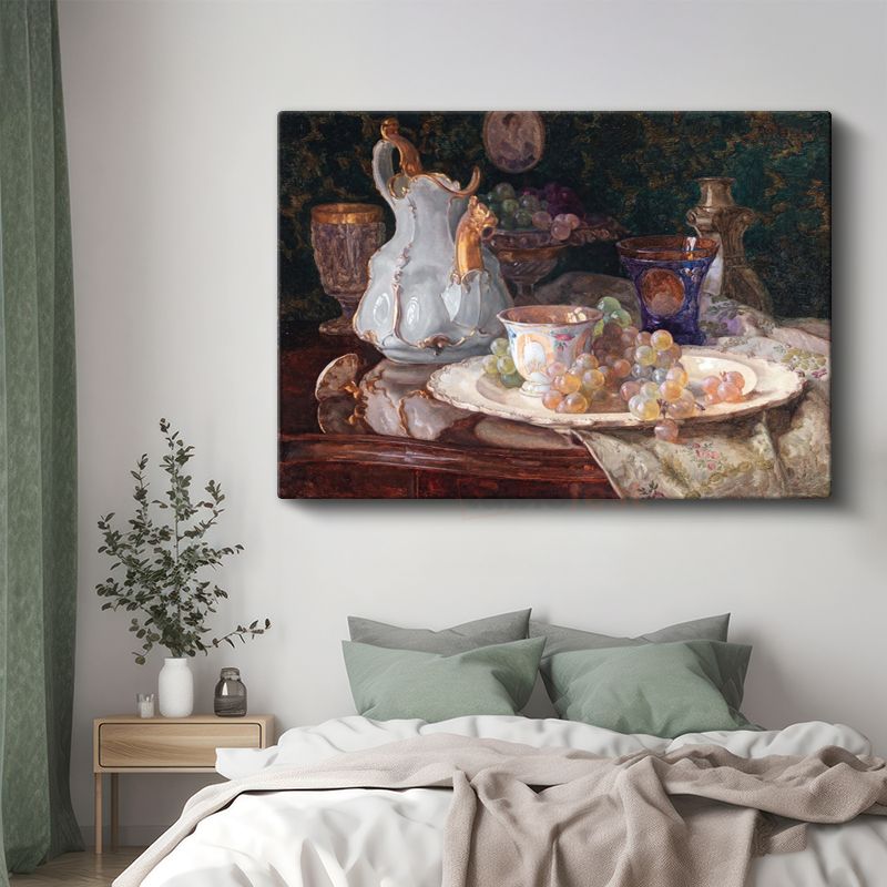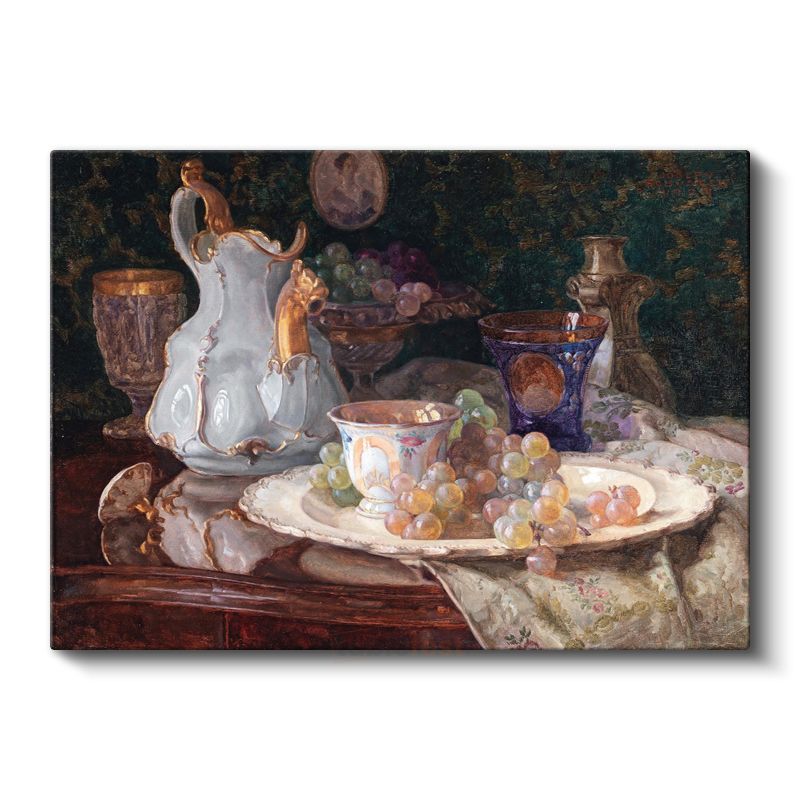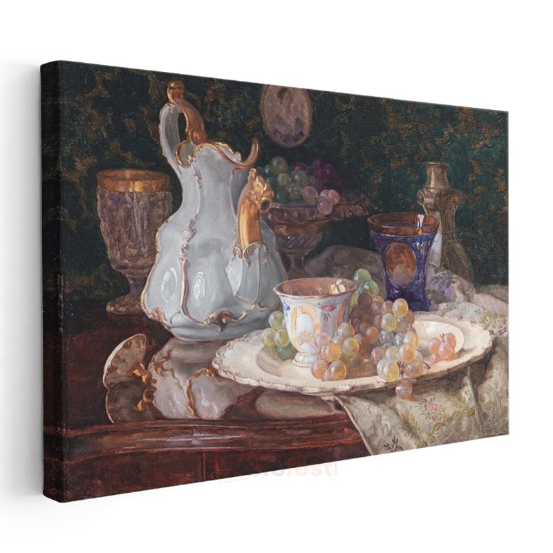 Jean-Baptiste-Siméon Chardin - Porselen ve Üzümler Natürmortu Kanvas Tablo
