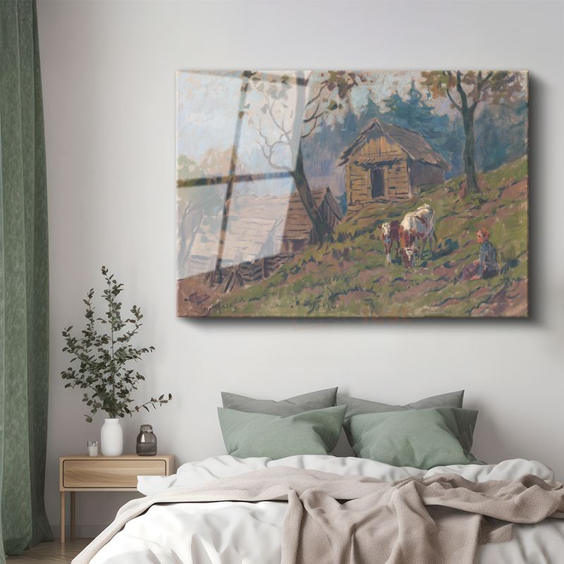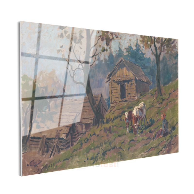 Jean-François Millet - Çiftlik Evi Cam Tablo