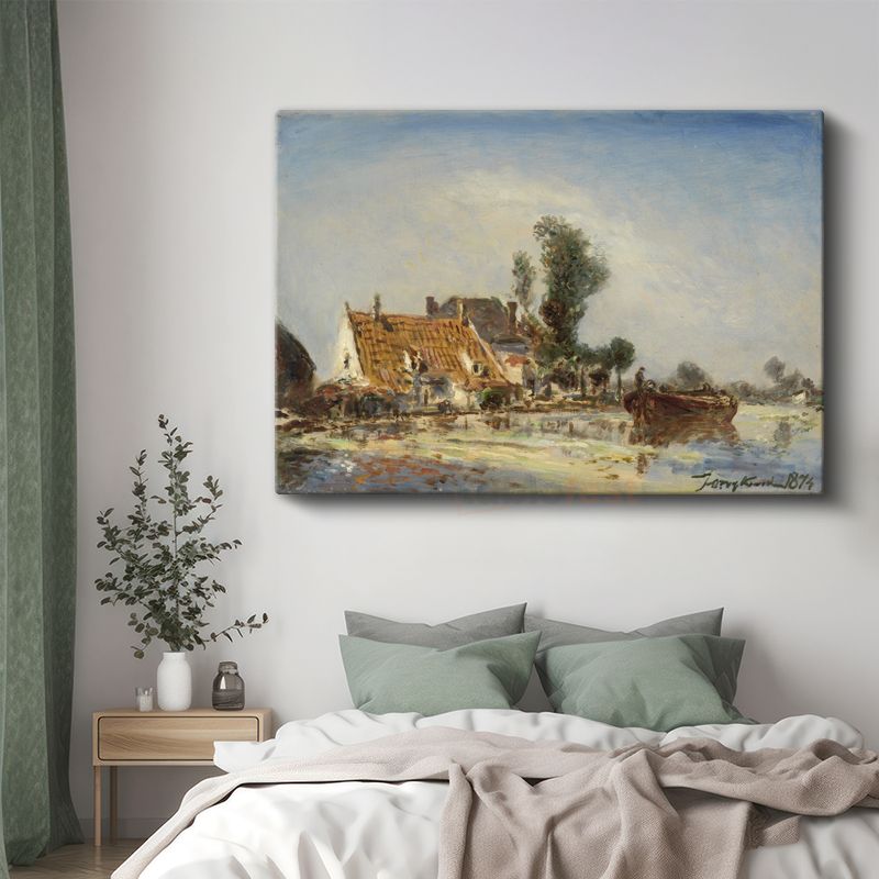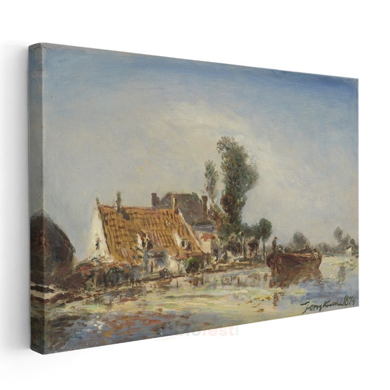 Johan Jongkind - Nehir Kenarında Kulübe Kanvas Tablo
