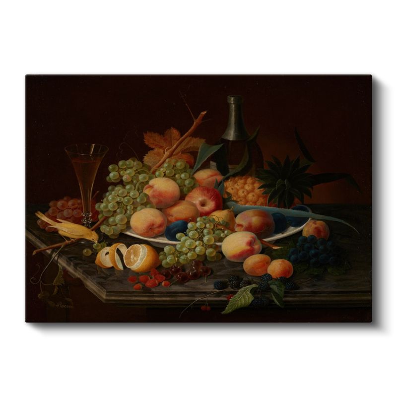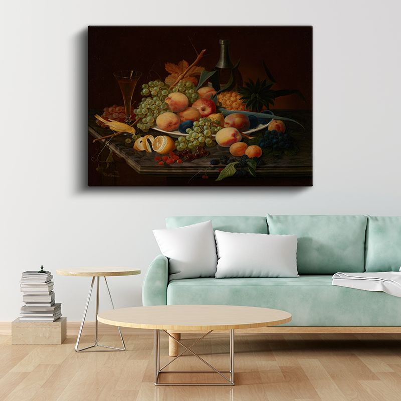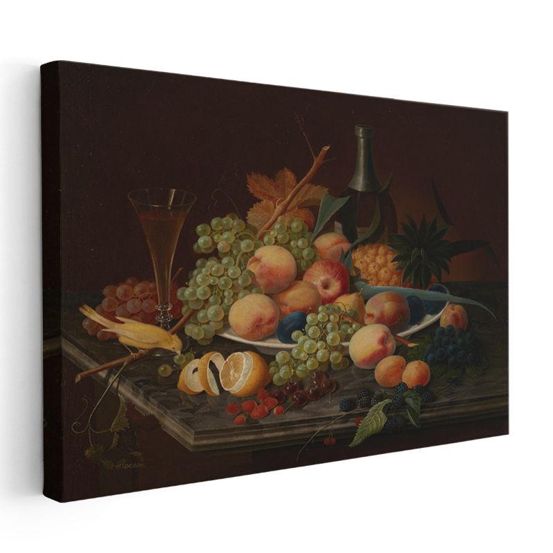 Johann Wilhelm Preyer - Şeftali ve Üzüm Natürmortu Kanvas Tablo