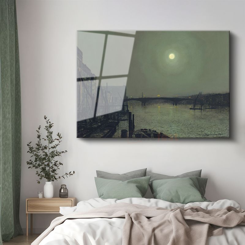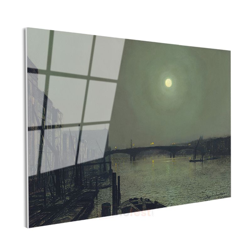 John Atkinson Grimshaw - Ay Işığında Nehir Manzarası Cam Tablo
