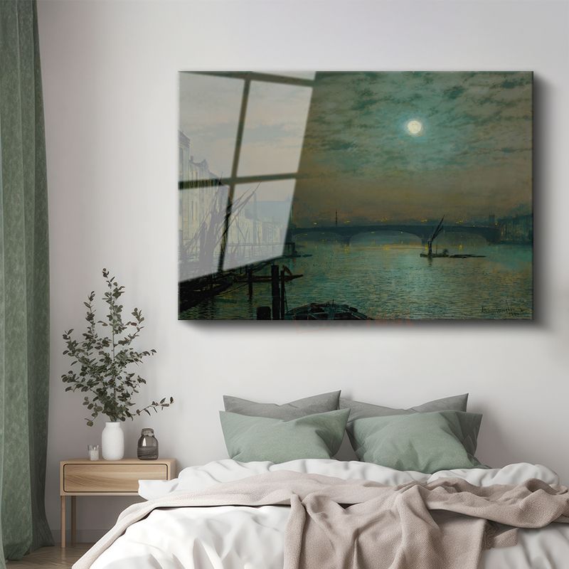 John Atkinson Grimshaw - Ay Işığında Thames Nehri Cam Tablo