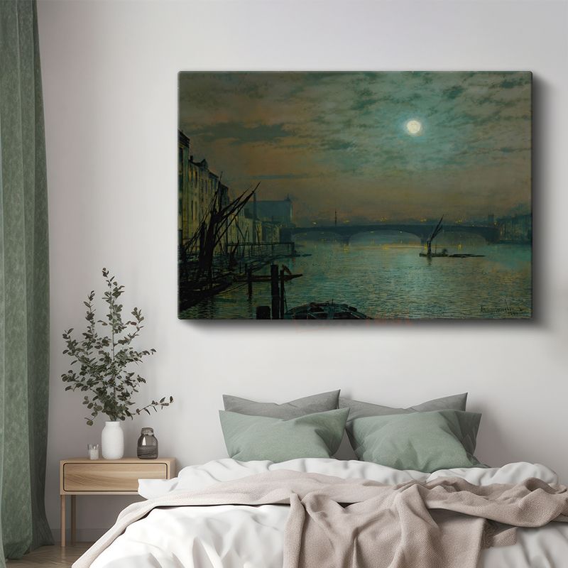 John Atkinson Grimshaw - Ay Işığında Thames Nehri Kanvas Tablo