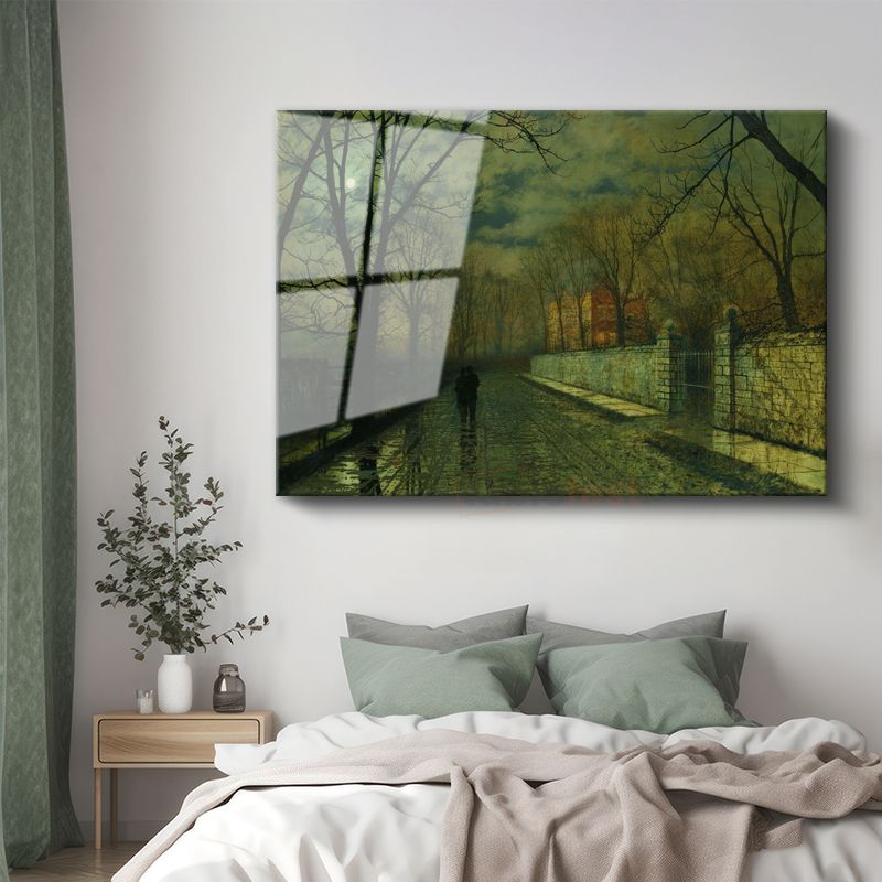John Atkinson Grimshaw - Ay Işığında Yol Cam Tablo
