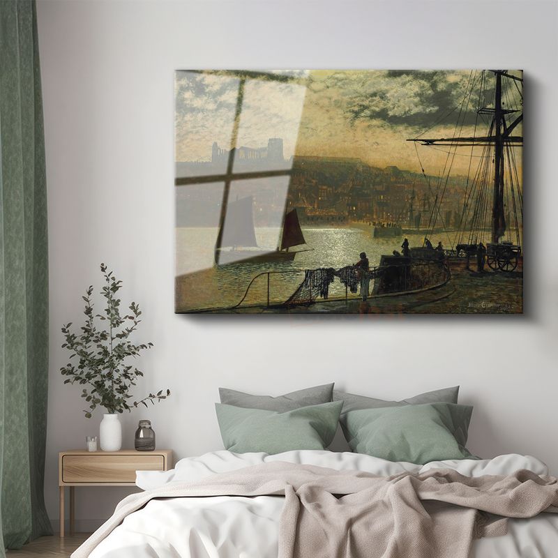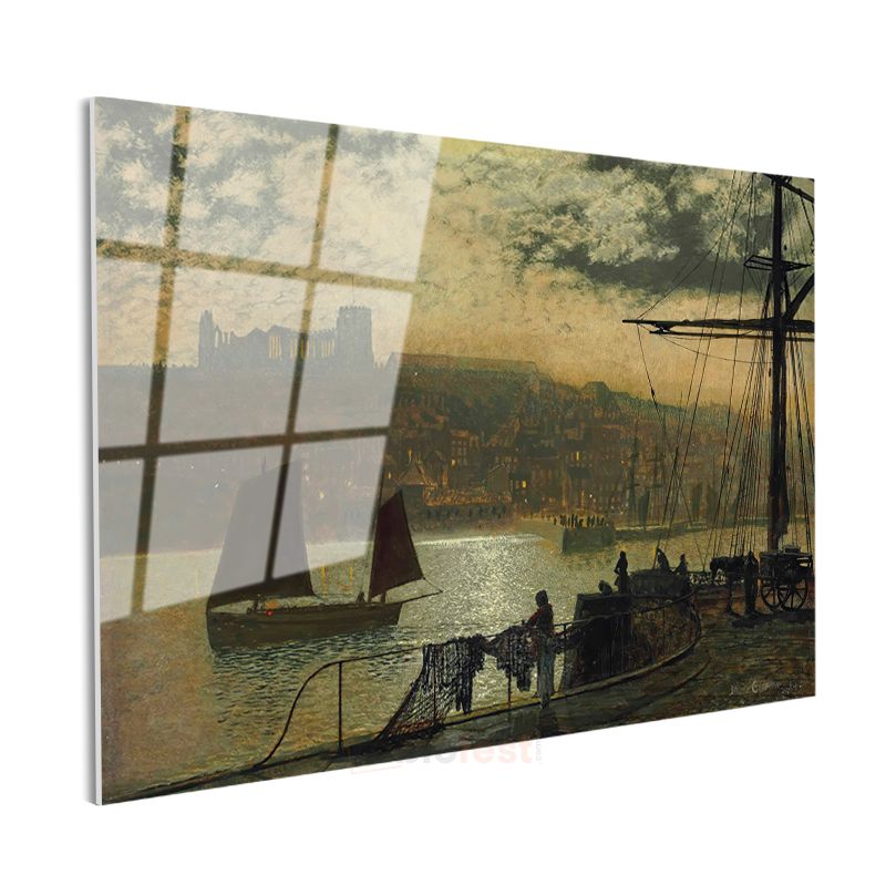 John Atkinson Grimshaw - Whitby Limanı Cam Tablo