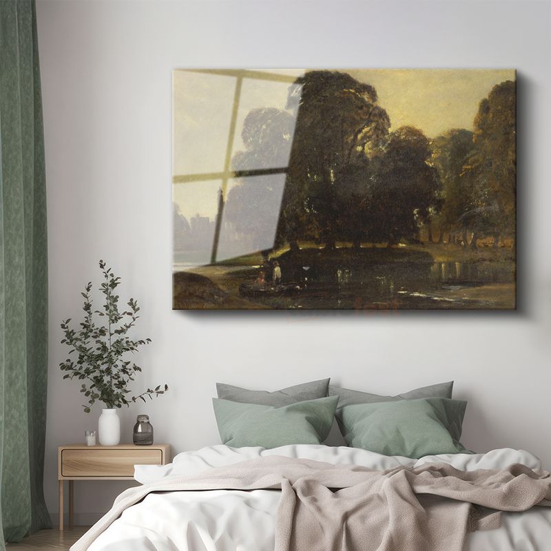 John Constable - Göl Kenarında Ağaçlar Cam Tablo