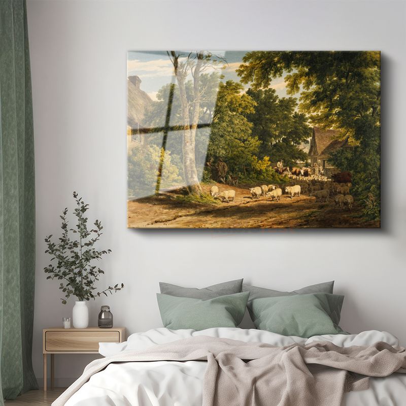 John Constable - Kırsal Köy ve Koyun Sürüsü Cam Tablo