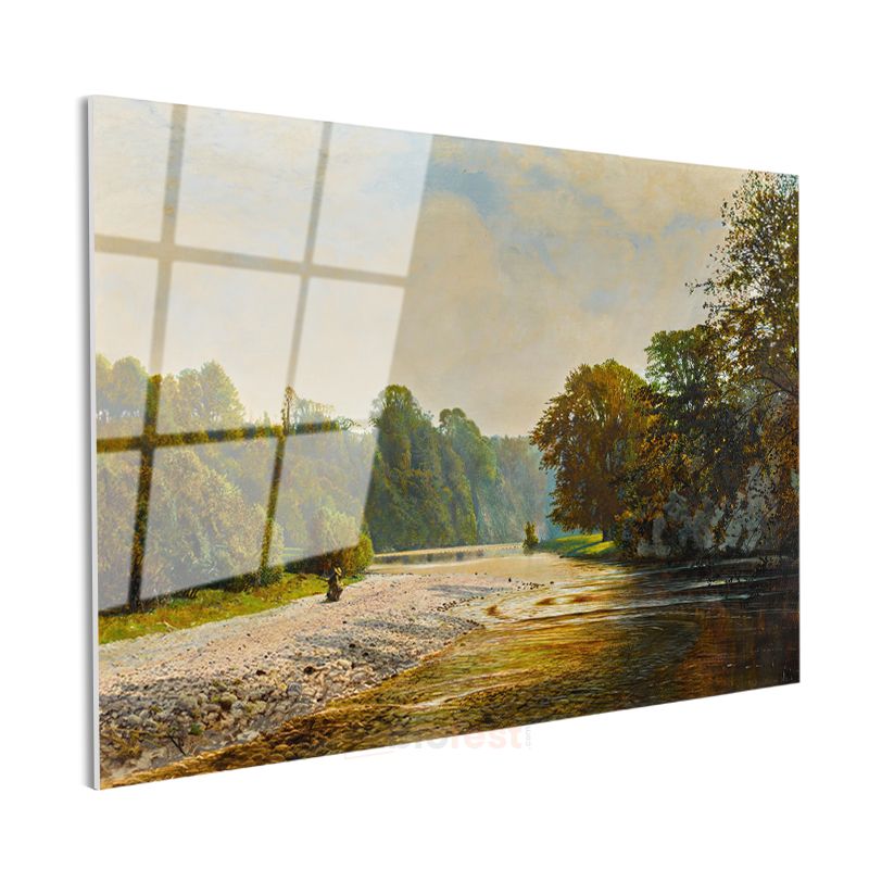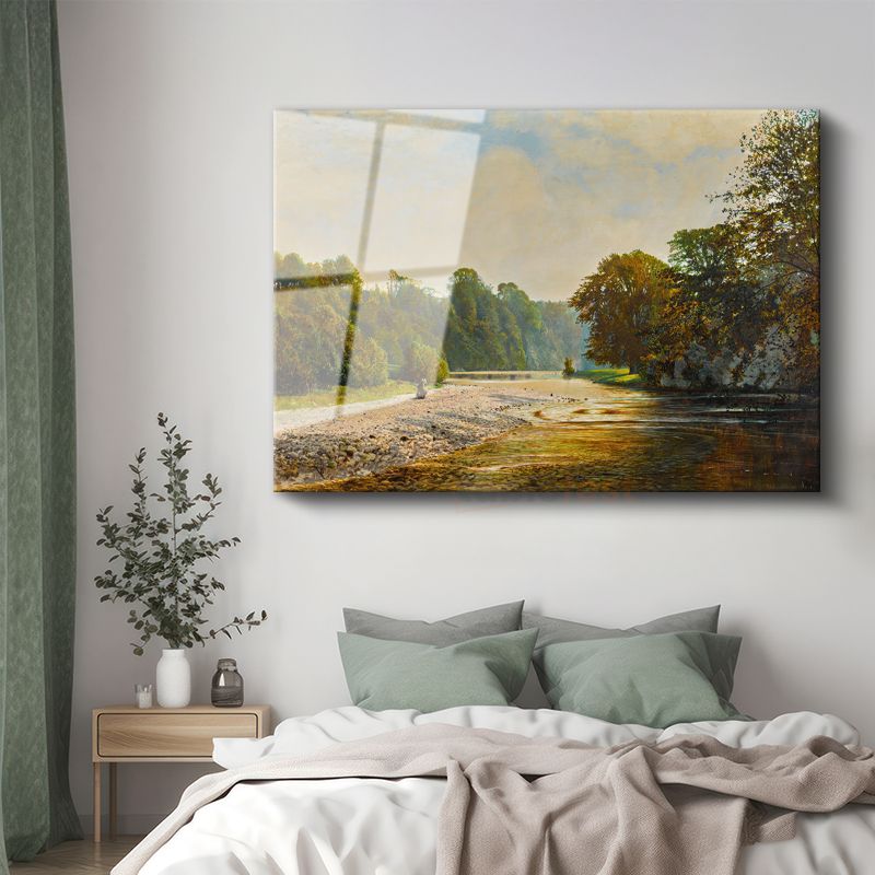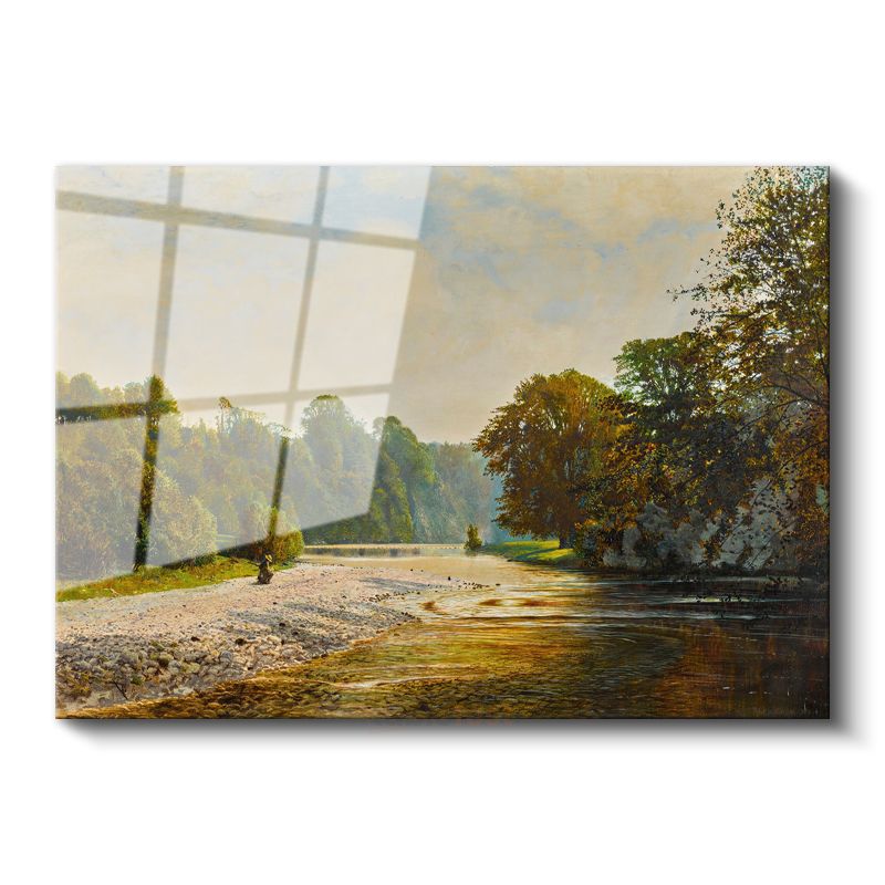 John Dearle - Nehir Kıyısında Sonbahar Cam Tablo
