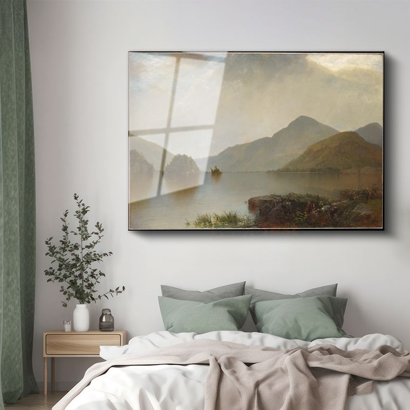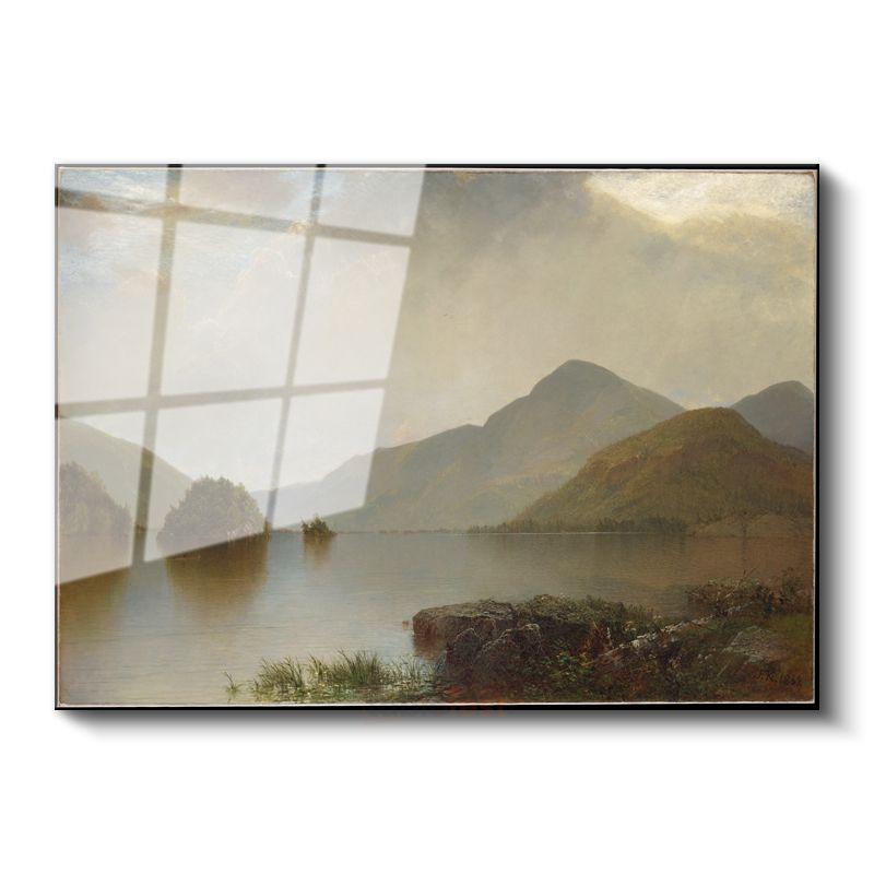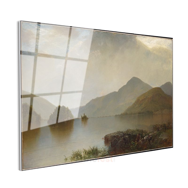 John Frederick Kensett - Dağ Gölü Manzarası Cam Tablo