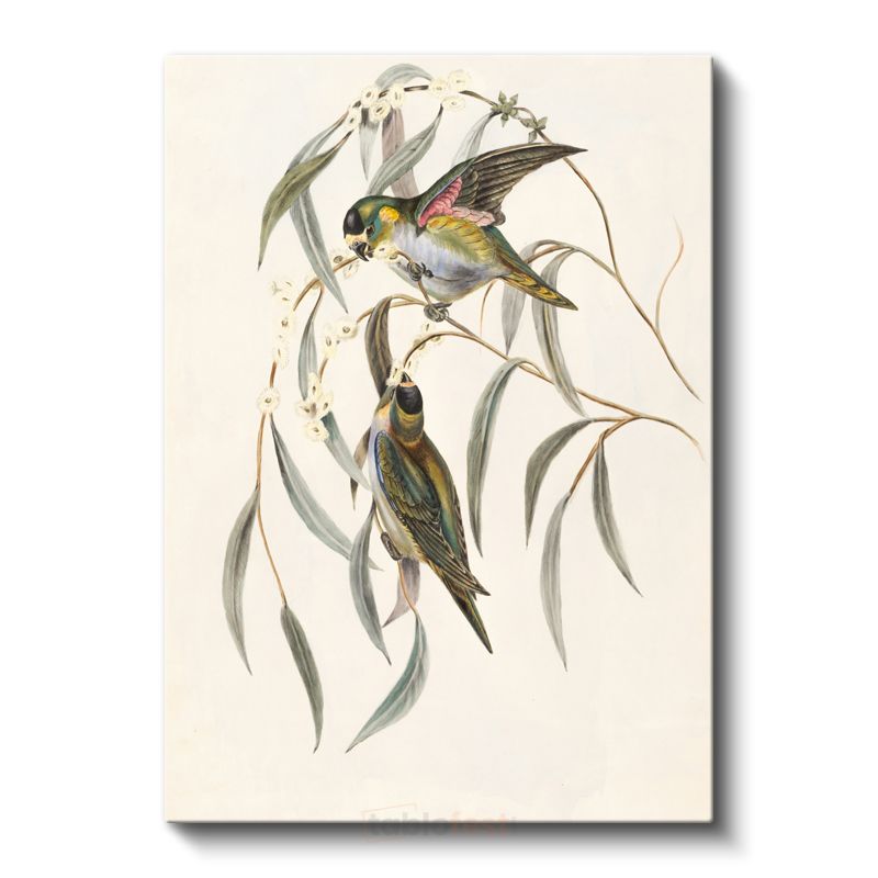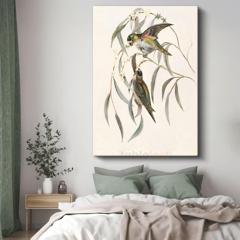 John Gould - Okaliptüs Dalındaki Kuşlar Kanvas Tablo