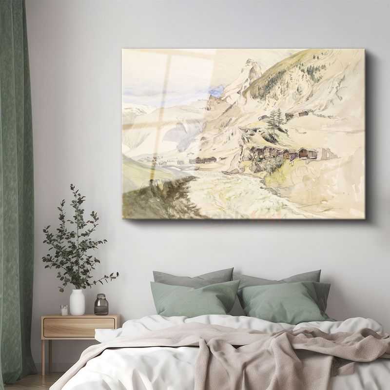 John Ruskin - Alp Dağları Manzarası Cam Tablo