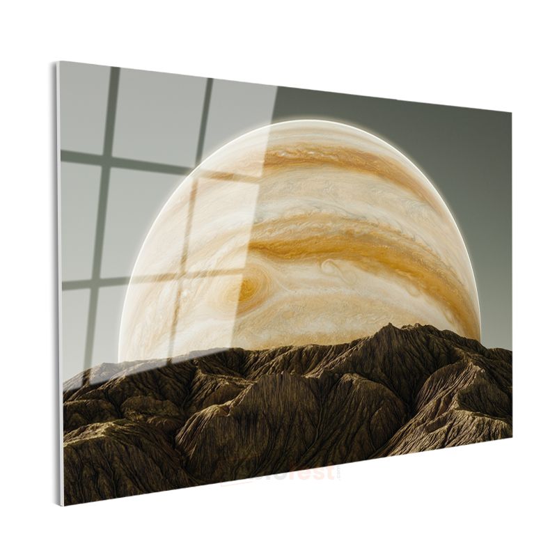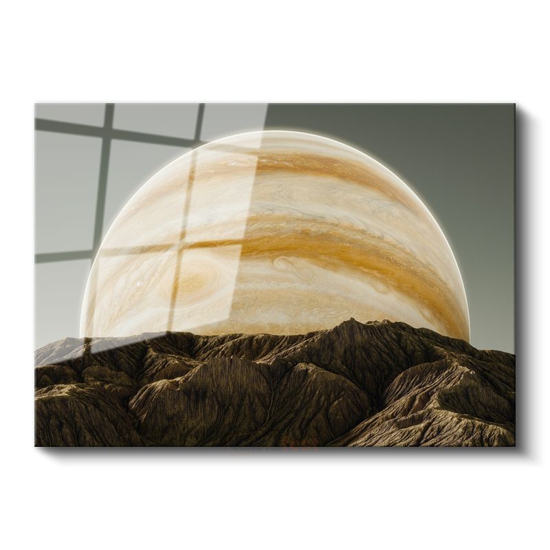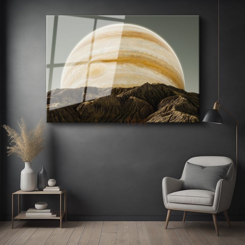 Jüpiter Doğuşu - Dağların Ardından Yükselen Dev Gezegen Cam Tablo