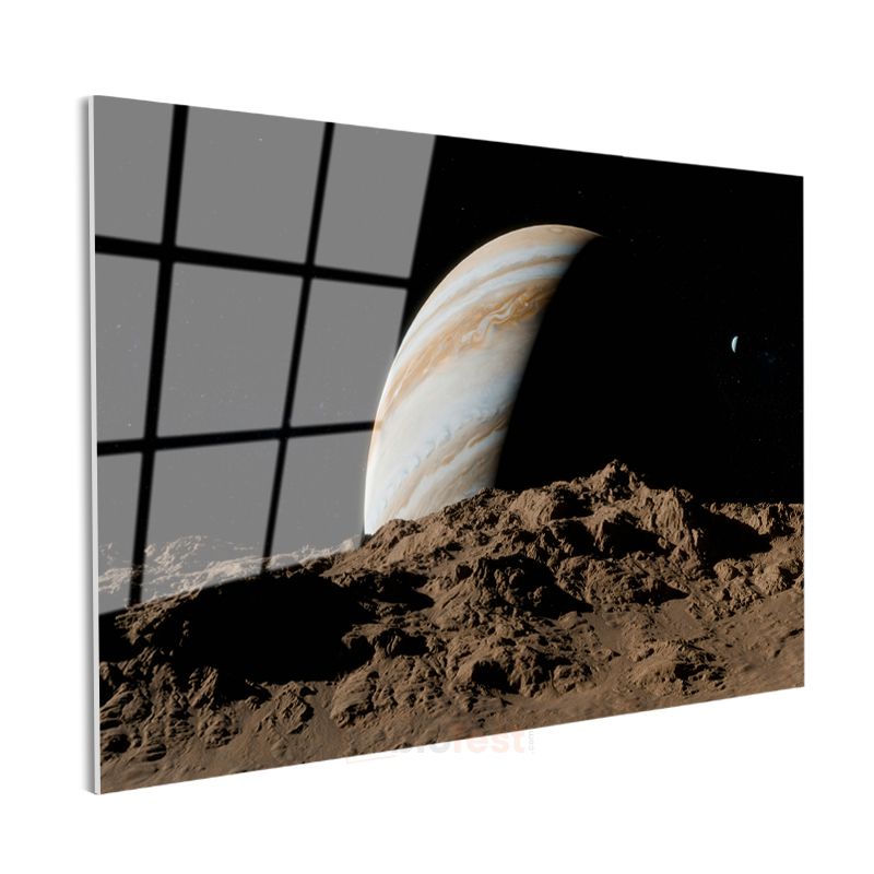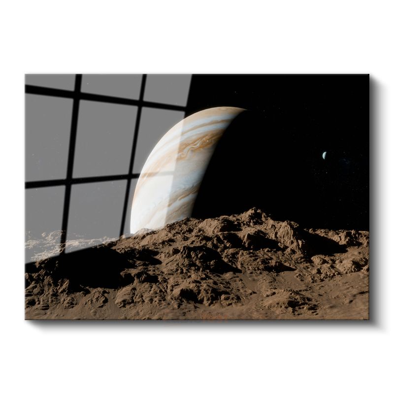 Jüpiter Manzarası - Ay Yüzeyinden Gaz Devi Cam Tablo