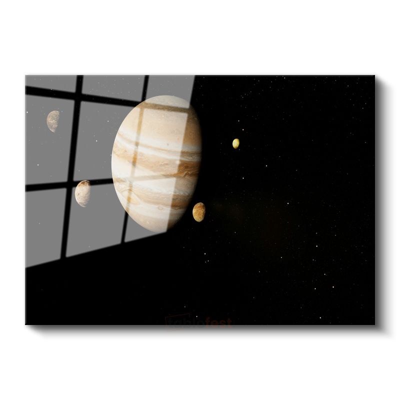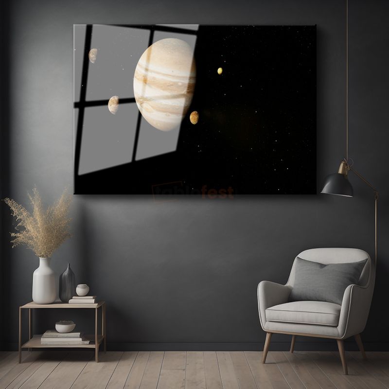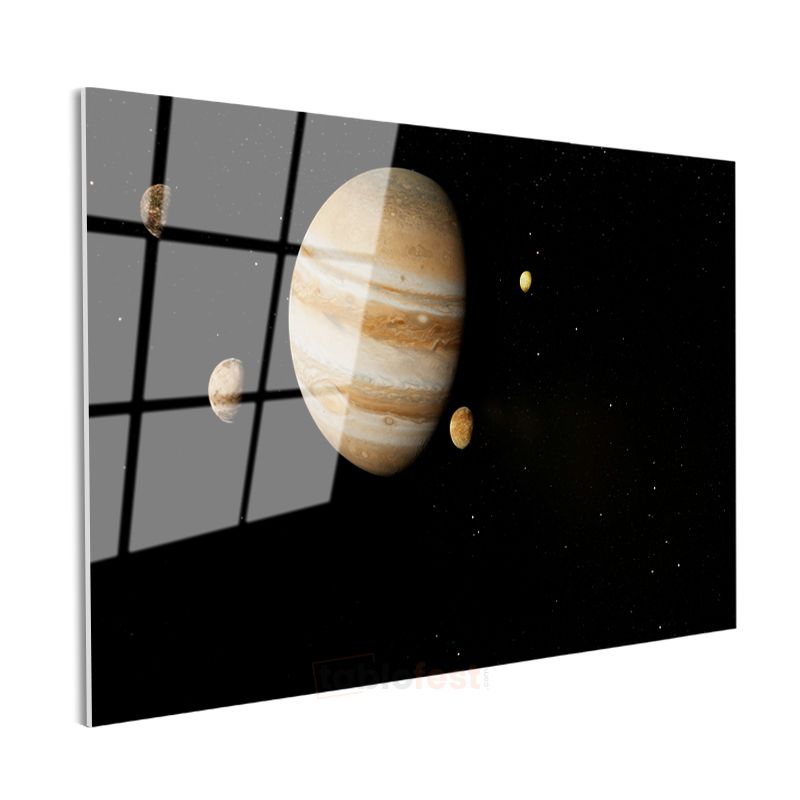 Jüpiter ve Uyduları - Derin Uzayın İhtişamlı Gezegeni Cam Tablo