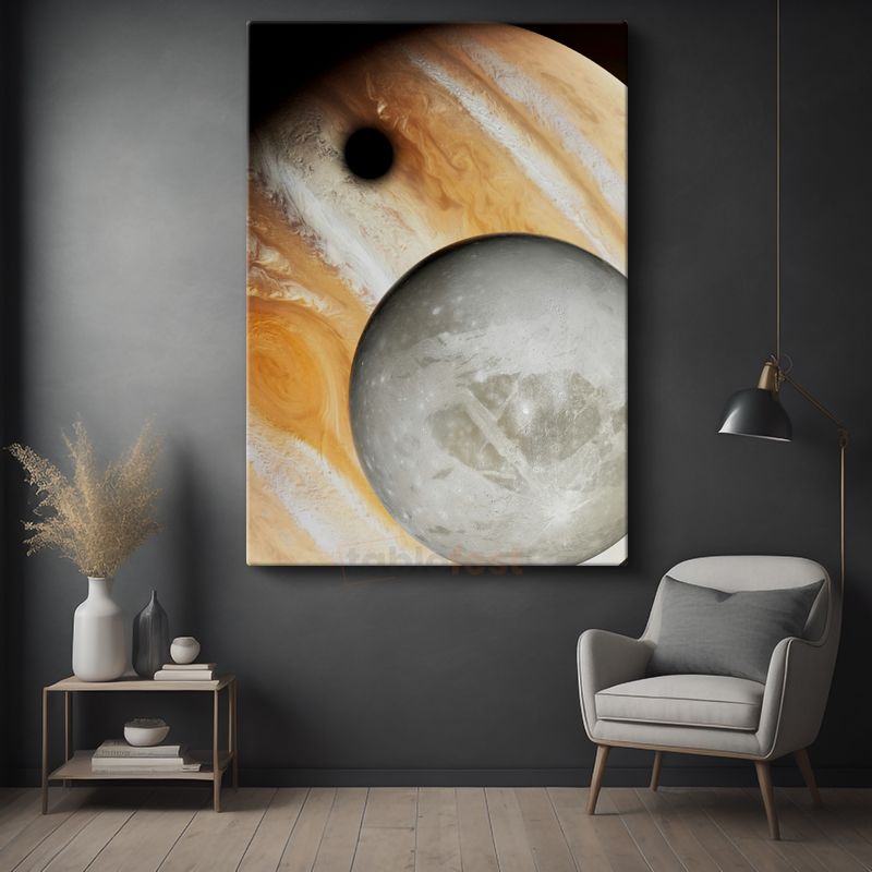 Jüpiter ve Uydusu - Uzayın Derinliklerinden Kozmik Buluşma Kanvas Tablo