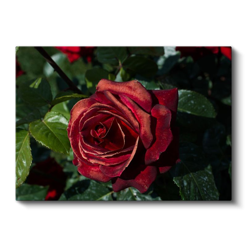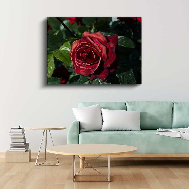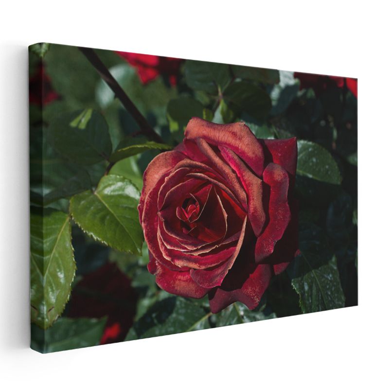 Kadife Kırmızı Gül - Yeşil Yapraklar Arasında Zarif Çiçek Portresi Kanvas Tablo
