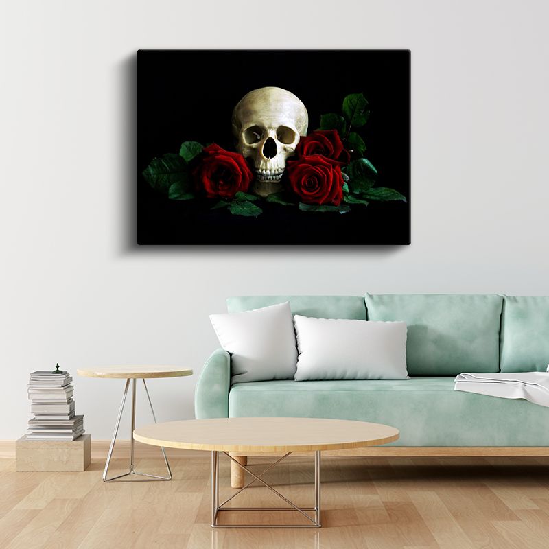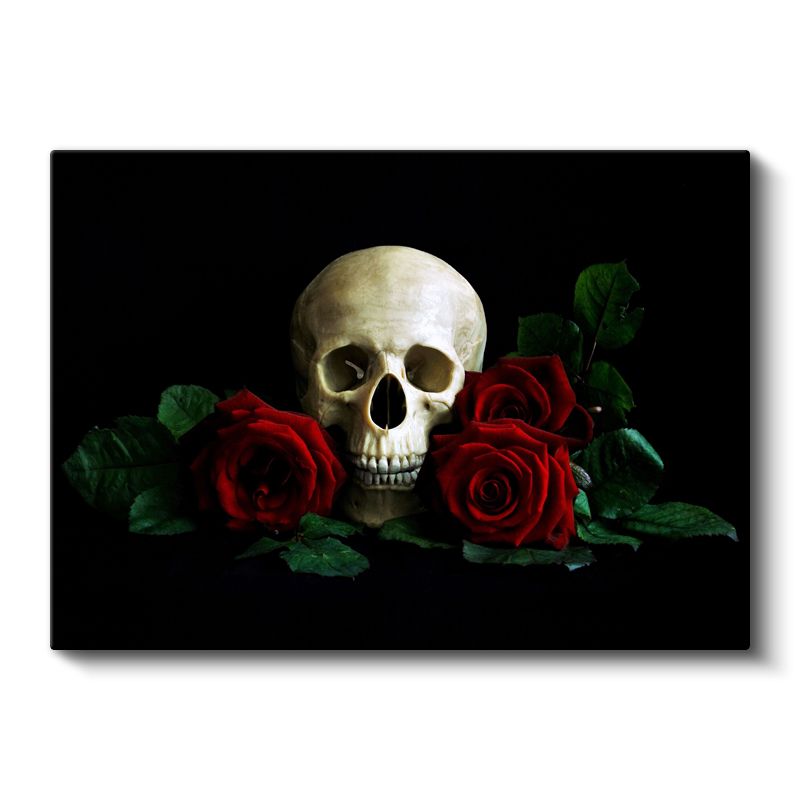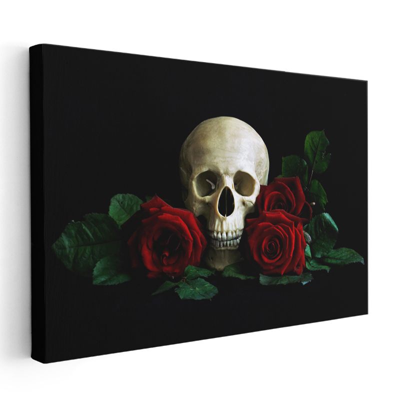 Kafatası ve Güller - Gotik Sanat Kanvas Tablo