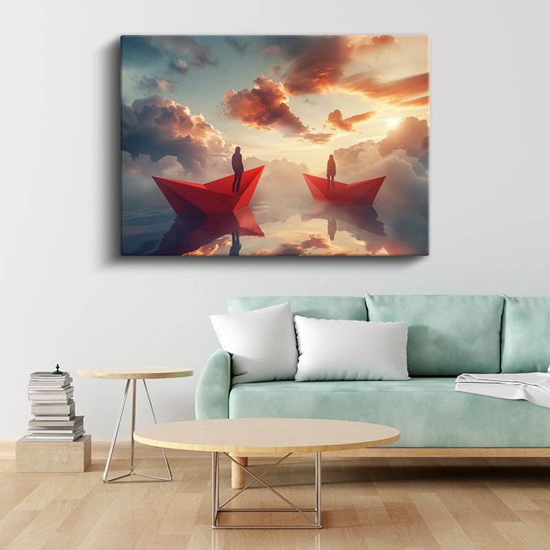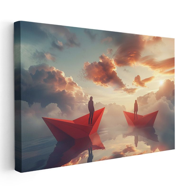 Kağıt Gemiler - Gökyüzü Denizinde Yolculuk Kanvas Tablo