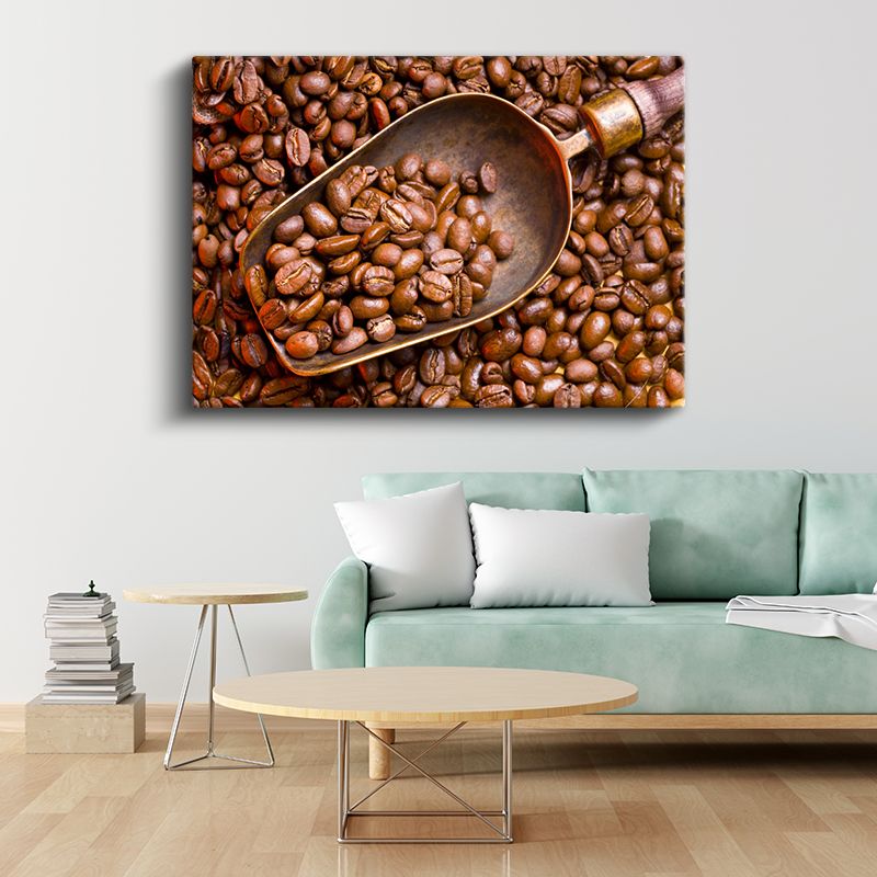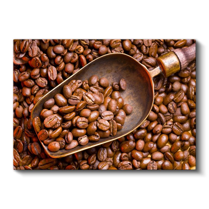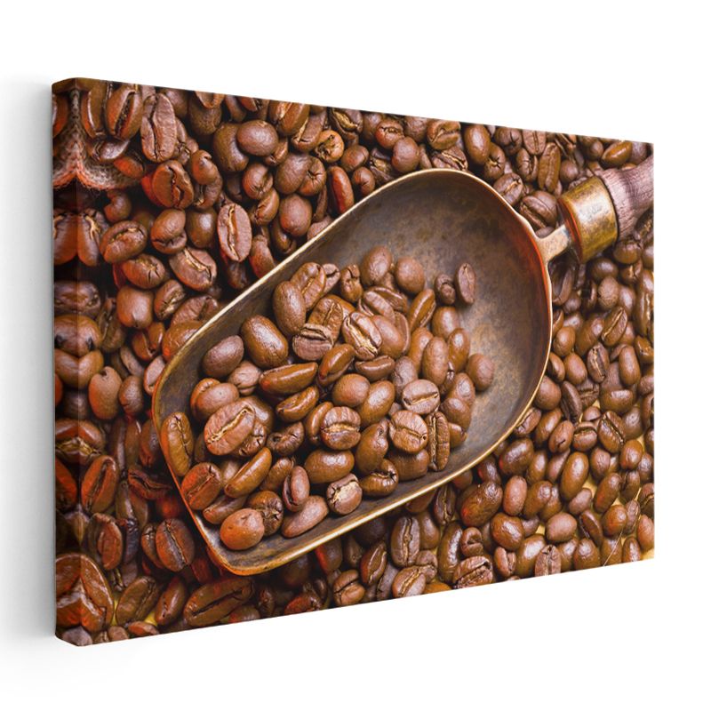 Kahve Çekirdekleri - Ahşap Kepçede Taze Kavurma Kanvas Tablo