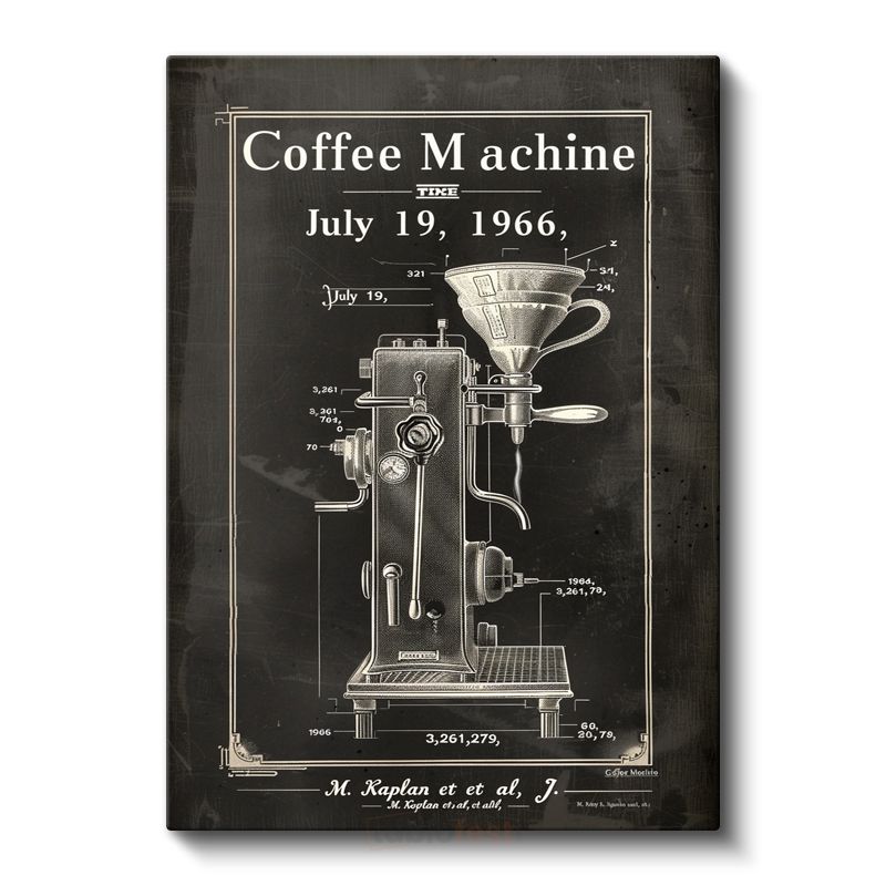 Kahve Makinesi Çizimi - 1966 Model Espresso Ekipmanı Kanvas Tablo