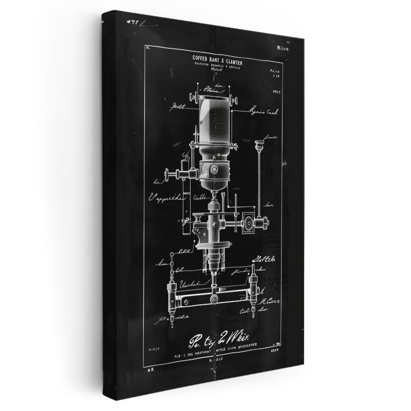 Kahve Makinesi - Vintage Öğütücü Mekanizması Patenti Kanvas Tablo