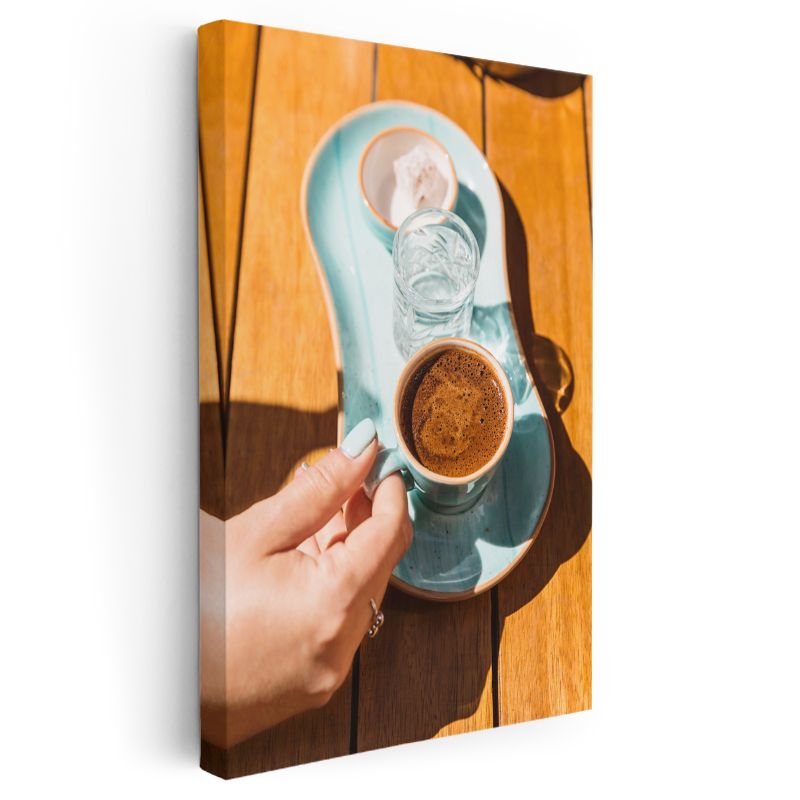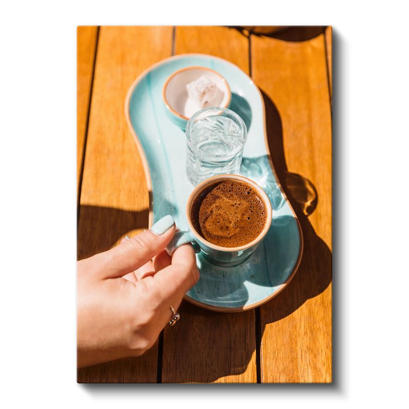 Kahve Molası - Güneşli Masada Türk Kahvesi Sunumu Kanvas Tablo