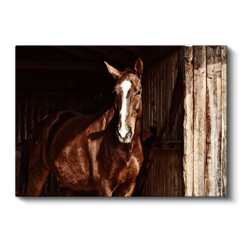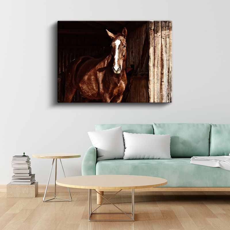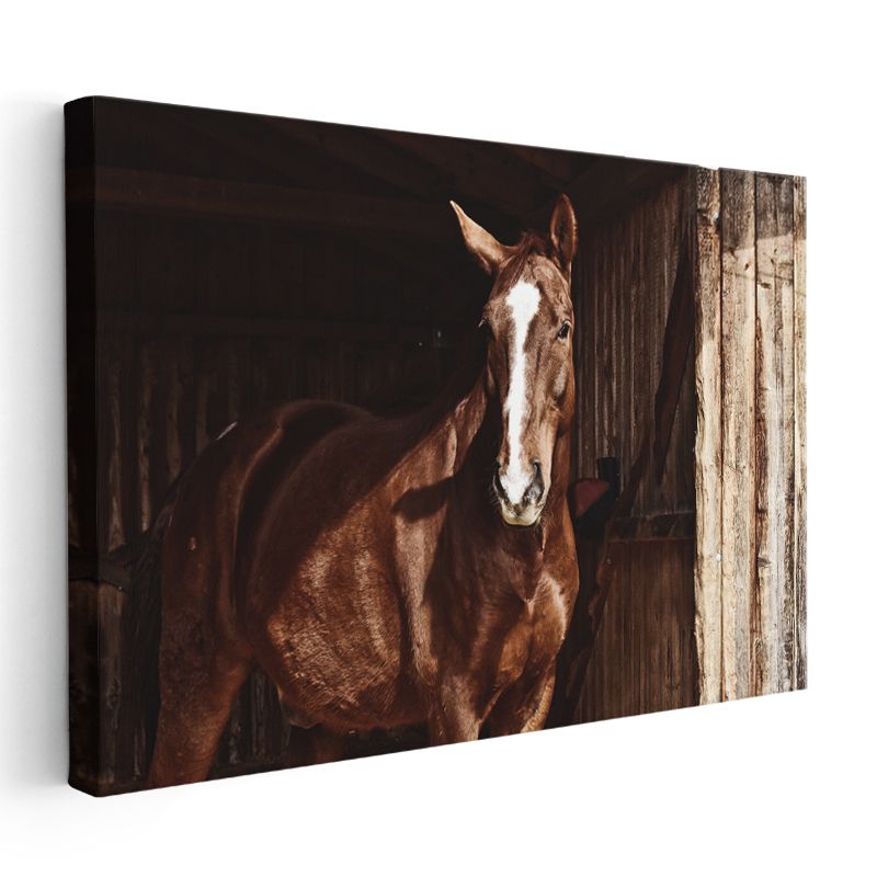 Kahverengi At - Ahırda Asil Duruş Kanvas Tablo