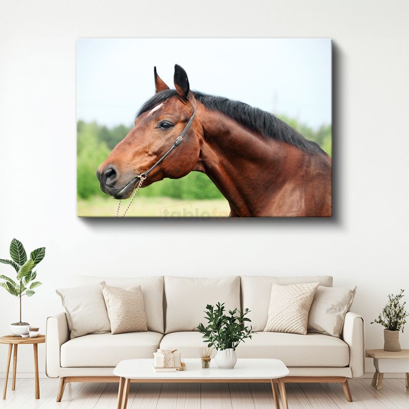 Kahverengi At - Asil Duruşlu Safkan Portresi Kanvas Tablo