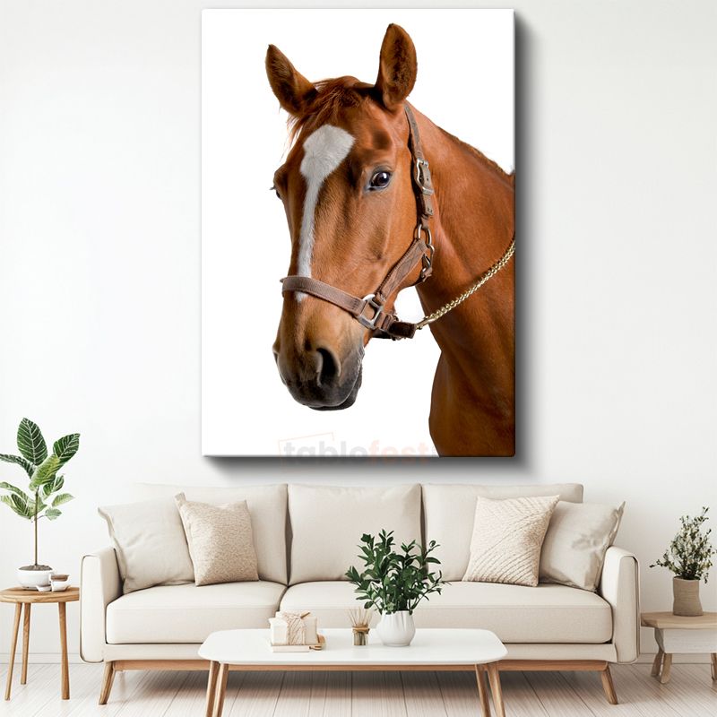 Kahverengi At - Soylu Duruşlu Safkan Portre Kanvas Tablo