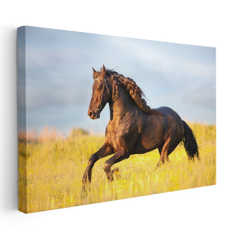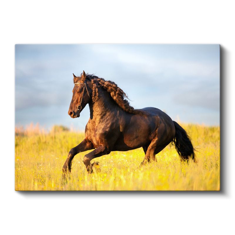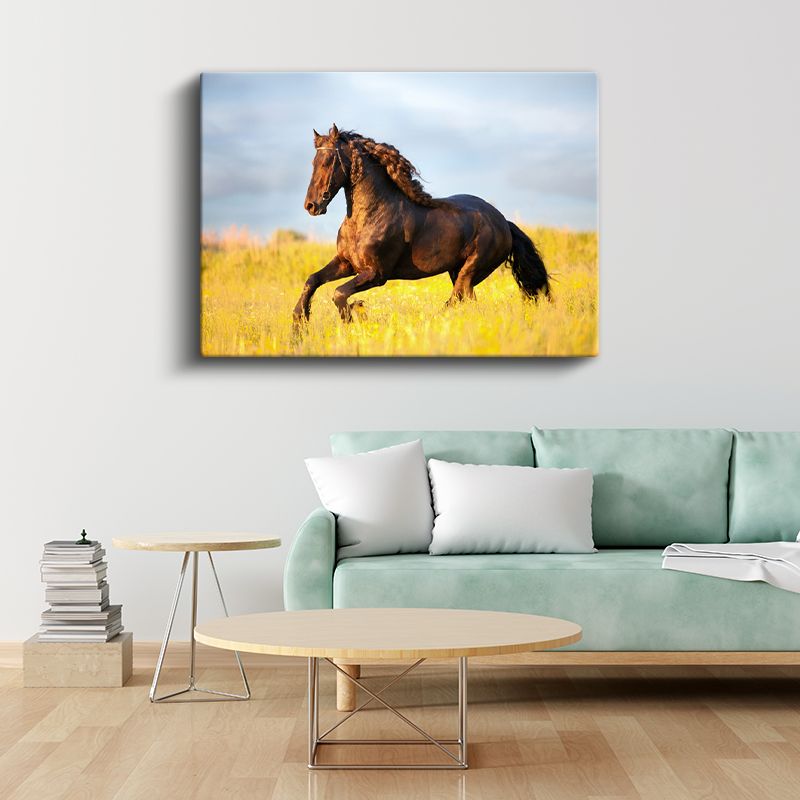 Kahverengi Aygır - Sarı Çayırda Özgür Koşu Kanvas Tablo