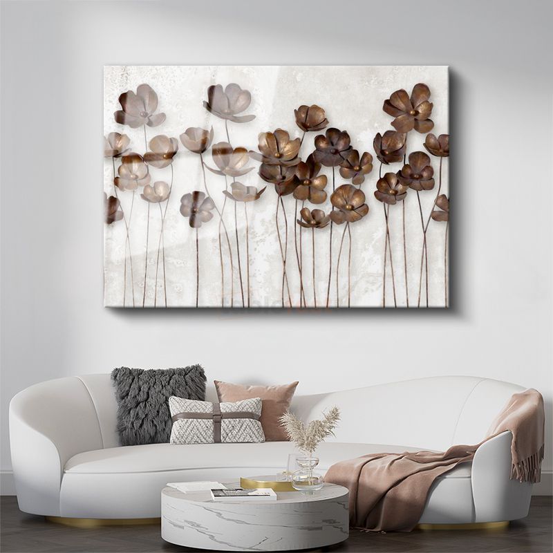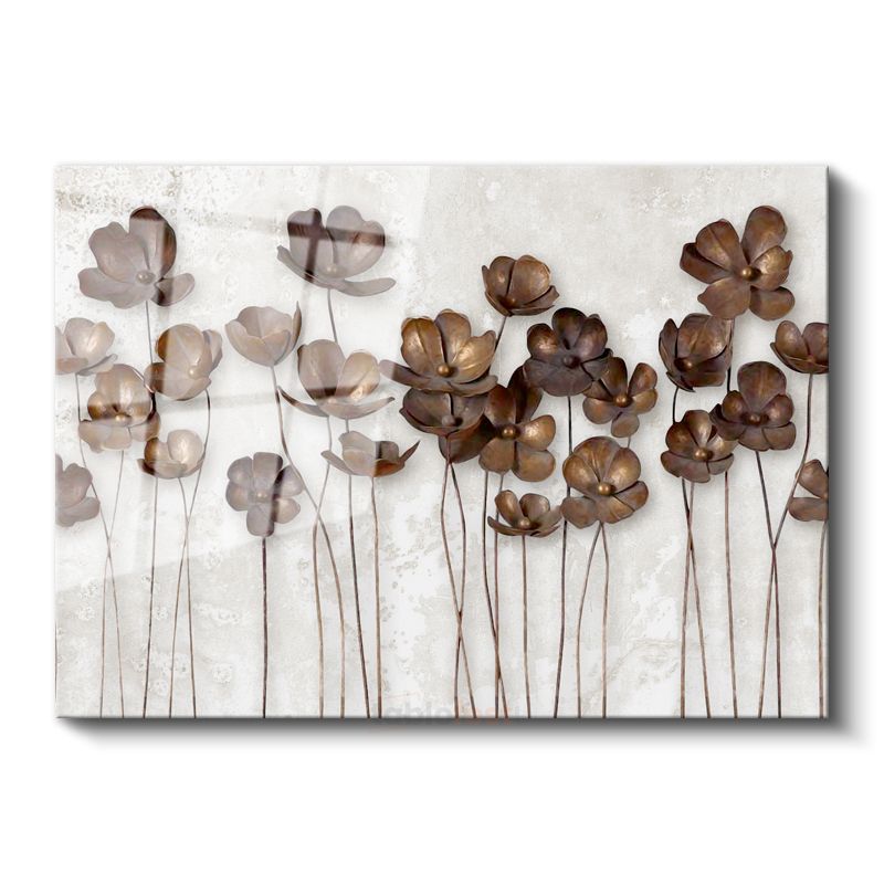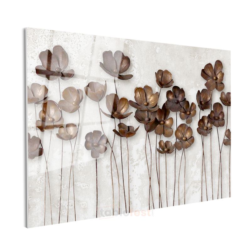 Kahverengi Çiçekler - Vintage Tarzı Zarif Kompozisyon Cam Tablo