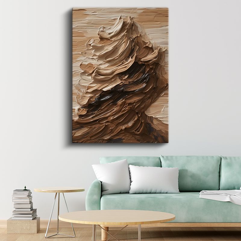 Kahverengi Dalga - Dokulu Soyut Hareket Kanvas Tablo