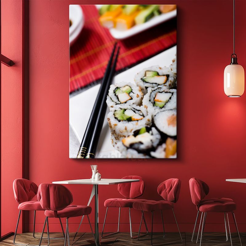 Kaliforniya Ruloları - Taze Suşi Sunumu Kanvas Tablo