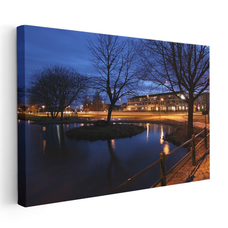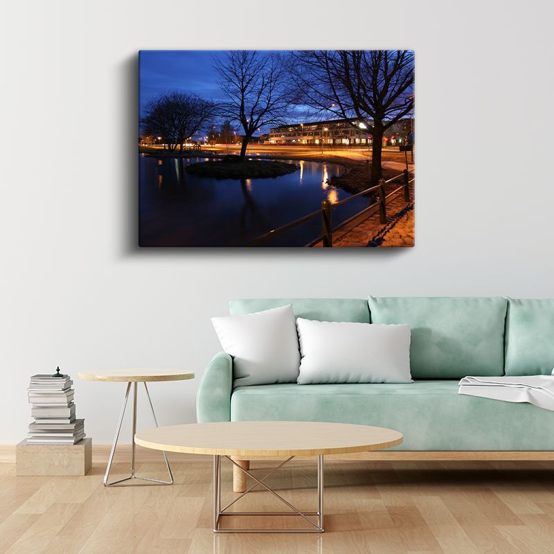 Kanal Kenarı - Akşam Yansımaları ve Ağaçlar Kanvas Tablo
