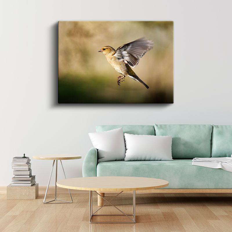Kanat Çırpan Serçe - Uçuş Anında Yakalanan Kuş Kanvas Tablo