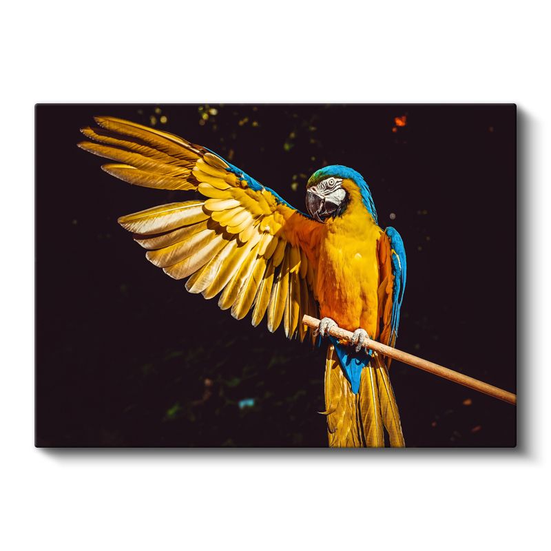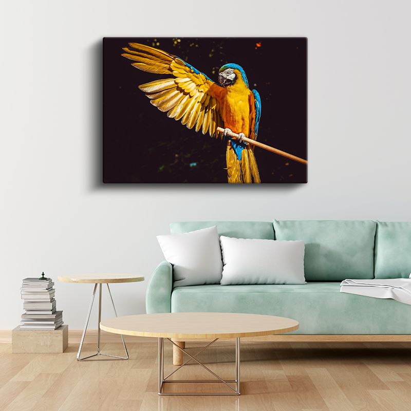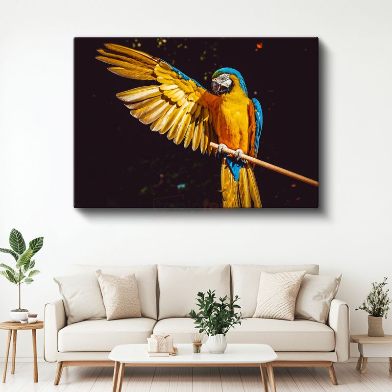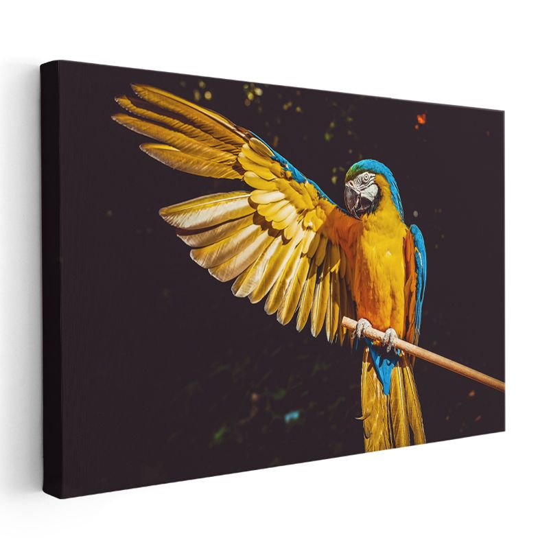 Kanatları Açık - Mavi Sarı Papağanın Gösterisi Kanvas Tablo