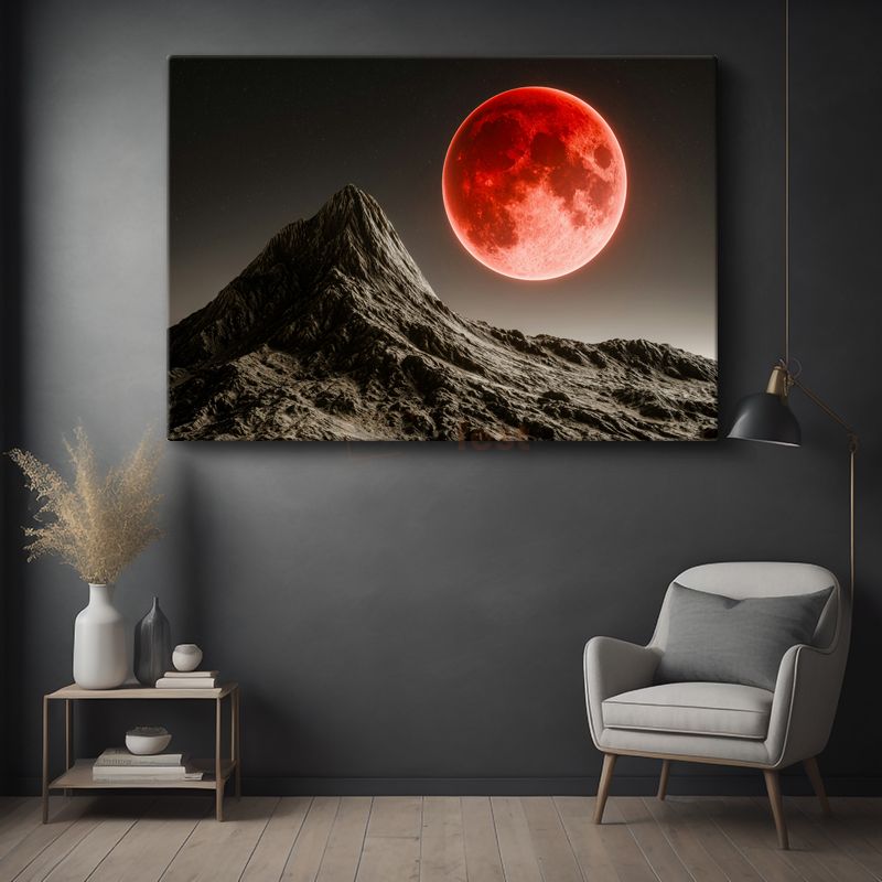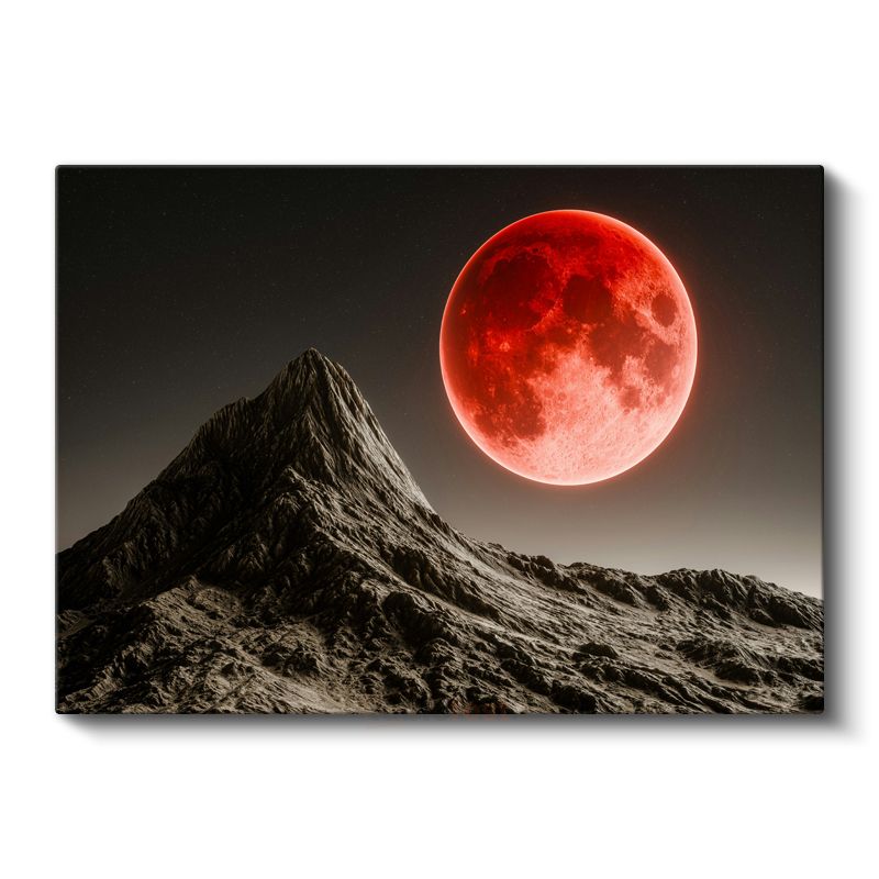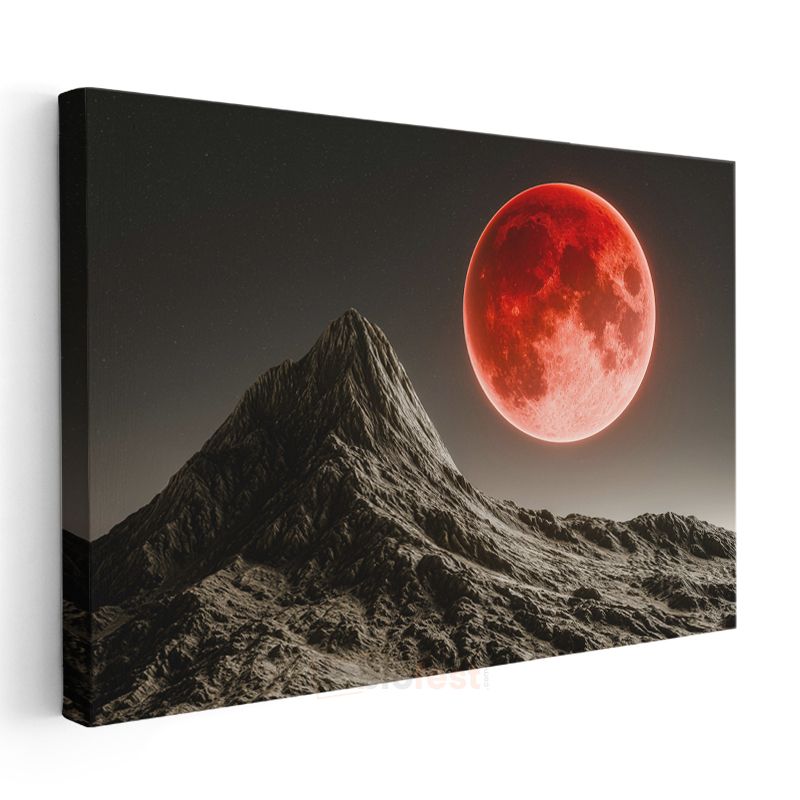 Kanlı Ay ve Dağ - Dramatik Gece Manzarası Kanvas Tablo