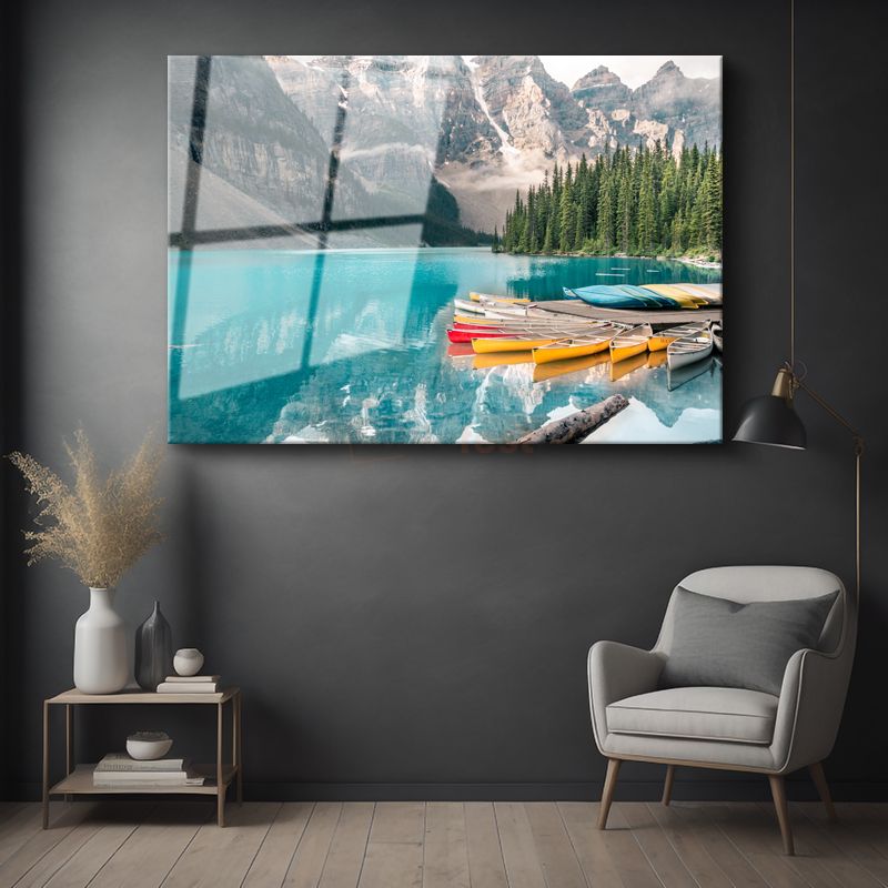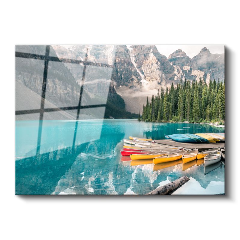 Kanolar - Turkuaz Göl ve Karlı Dağlar Cam Tablo