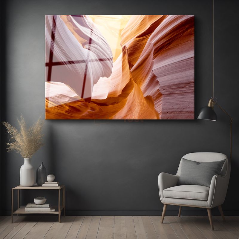 Kanyon Dalgaları - Turuncu Kaya Oluşumları Cam Tablo