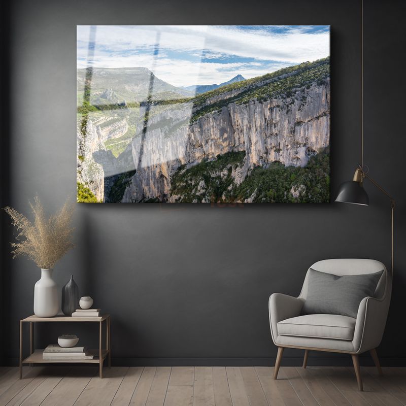 Kanyon Manzarası - Heybetli Kayalıklar ve Yeşil Vadiler Cam Tablo