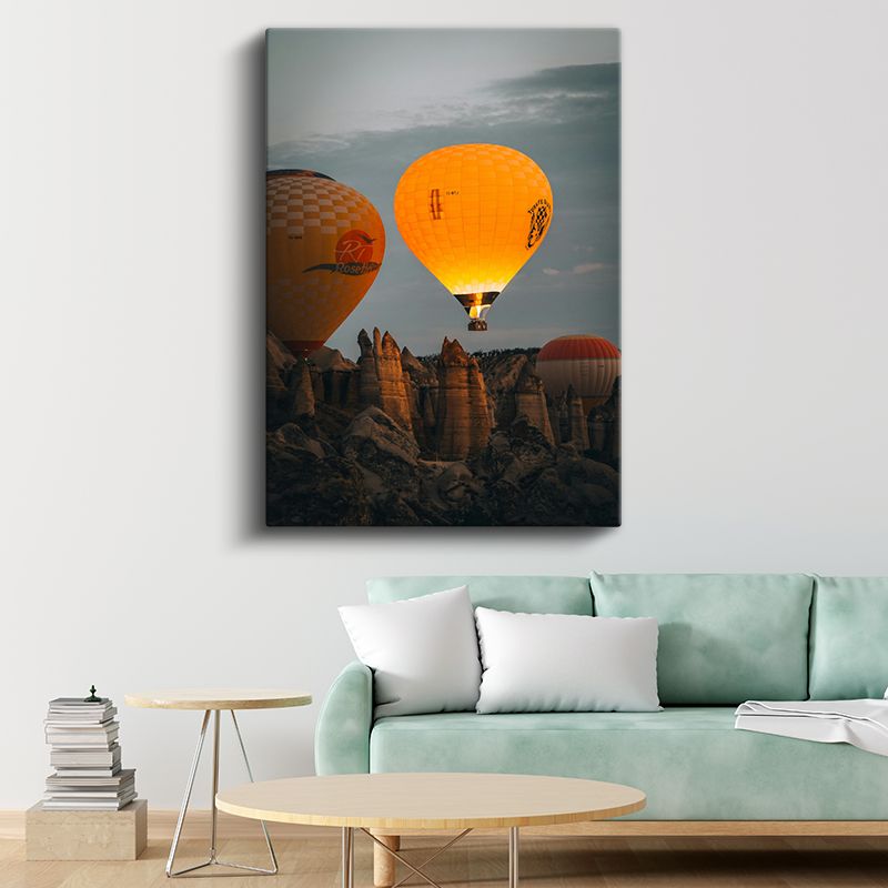 Kapadokya'nın Büyüsü - Turuncu Sıcak Hava Balonları Kanvas Tablo